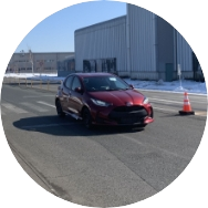 構内新車運搬業務では、トヨタ自動車東日本㈱岩手工場から生産された商品車を物流ヤードまで自走による運搬作業を行っています。工場から物流ヤードまでの走行ルートはロードヒーターが設置されており冬期でも安全に運搬することができます。