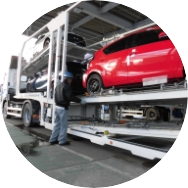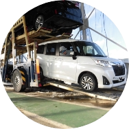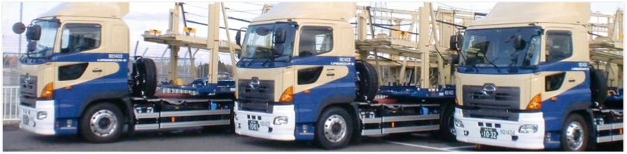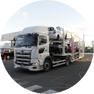 積載業務では、「キャリアカー」という自動車を運ぶ専用の積載車を使い、当社新点事業部門で点検を完了した商品車、仙台港にて船舶から荷降した商品車、そしてトヨタ自動車東日本の工場で生産された商品車の輸送業務を行っています。乗務員はプロドライバーの誇りを胸に、安全・安心を最優先に品質の維持と環境に配慮した輸送に、日々努めています。